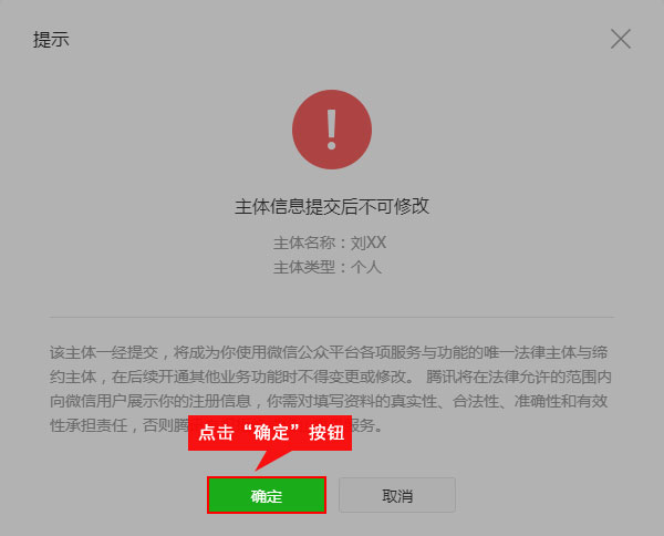 • 主体类型确认后不能修改。