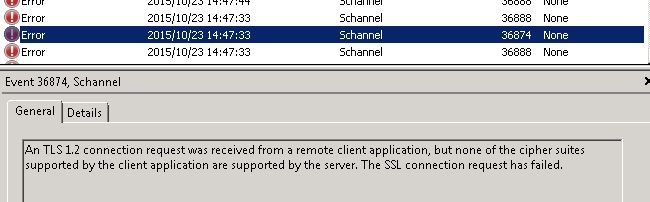 那么问题究竟出在哪呢?可能的问题,SHA256证书有问题?服务器不支持TLS1.2?然后根据Windows日志中的错误继续查找,都没能找到什么有用的信息。
