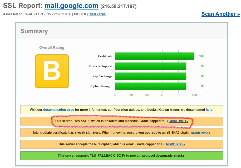 最后,附上不再支持SSL 3.0 Chrome厂商自家网站的测试结果供大家参考。
